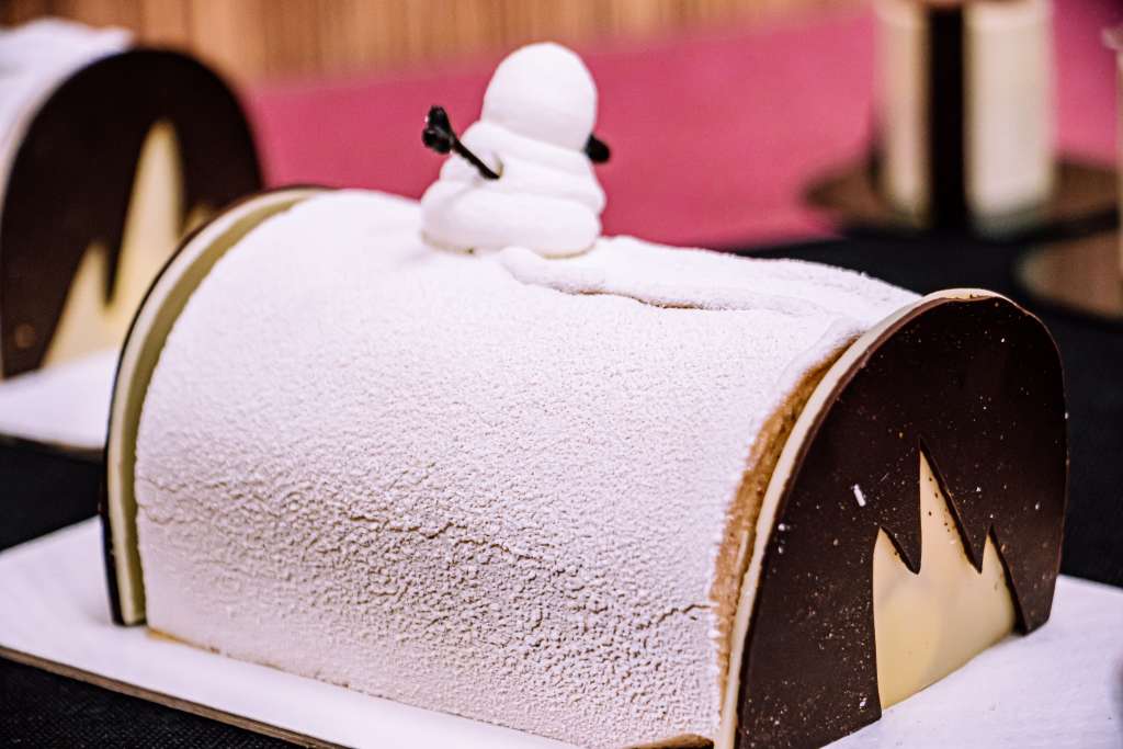 • Tronco Let it Snow: Inspirado en la clásica bûche de Noël, pero con un toque moderno y delicado.