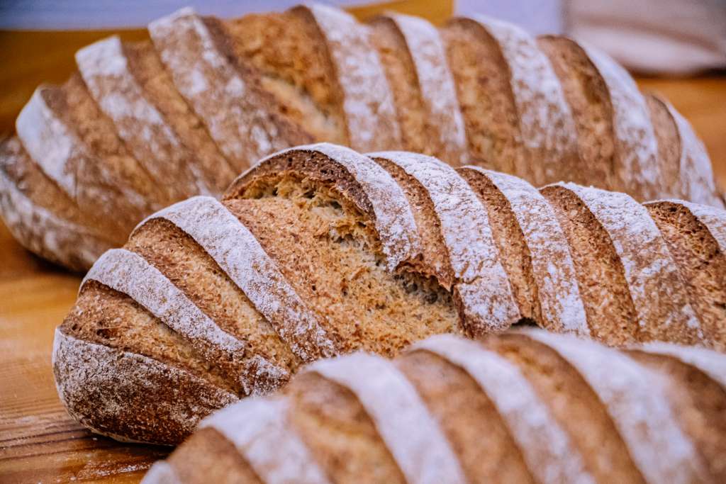 - Panes 100% integrales: usando harinas “whole meal” molidas a la piedra, creó piezas con una miga densa pero bien desarrollada, con gran sabor y una hidratación bien ajustada para favorecer una fermentación saludable y una textura agradable.