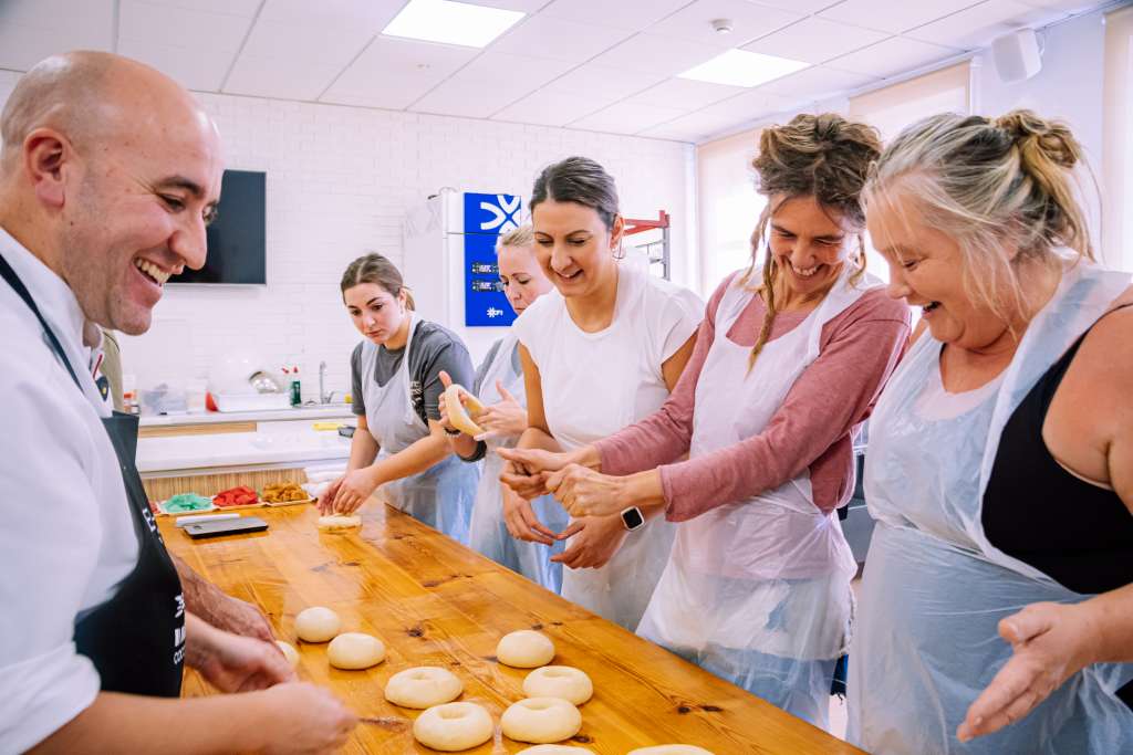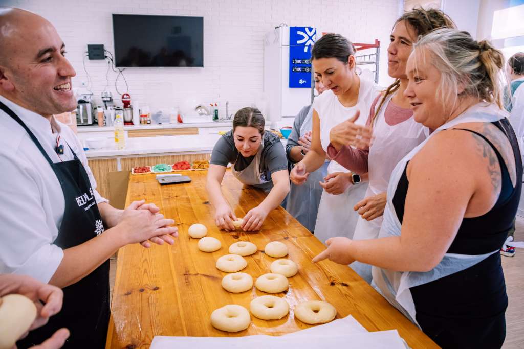 La jornada comenzó con el Roscón de Reyes, una de las elaboraciones más demandadas de la campaña. Bernardo explicó paso a paso la receta basada en Tegral Soft’r Pur Beurre, un preparado que garantiza una miga tierna, aromática y de larga duración, ideal para producciones intensivas. Se profundizó en los tiempos de amasado, hidratación, reposo y fermentación, además de trucos profesionales para obtener un alveolado regular y una corteza brillante y fina.